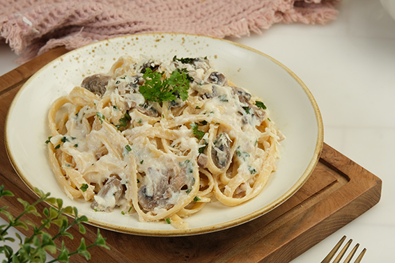 500 g tészta (penne, tagliatelle vagy spagetti), 500 g gomba (csiperke vagy erdei gombakeverék),