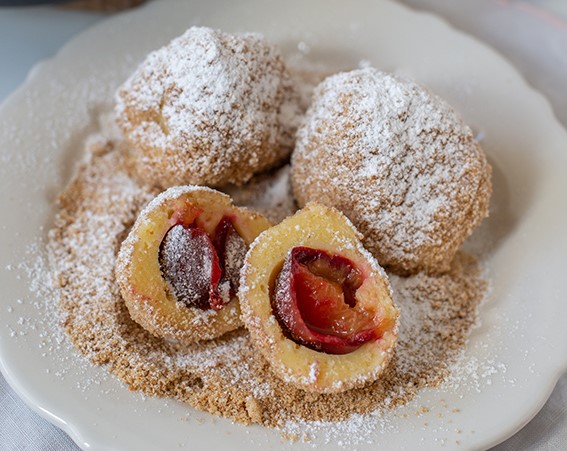 cukros szilvát teszünk, majd gombócokat formázunk belőle.