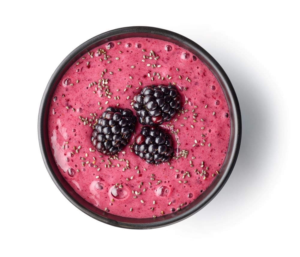 Elkészítés: Az összes hozzávalót tegyük egy turmixgépbe, és maximális fokozaton keverjük néhány percig, amíg teljesen sima, krémes állagú nem lesz! Poharakba öntve azonnal fogyasszuk! A tetejét díszítsük néhány egész szem szederrel!
