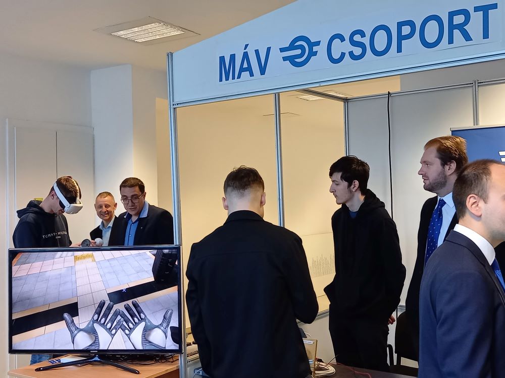 Nagy sikert aratott a VR-szerelőszimulátor a győri Széchenyi Egyetem állásbörzéjén A Széchenyi István egyetemi állásbörze idén is nagy sikerrel zajlott, ahol számos érdeklődő fiatal vett részt. A rendezvényen különféle cégek mutatták be karrier- és duális képzési lehetőségeiket, a fiatalok pedig közvetlenül kapcsolatba léphettek a munkaadók képviselőivel. Részt vettünk az egyetem által szervezett duális kerekasztal-beszélgetésen, ahol ismertettük a vállalati duális képzés programelemeit, és a duális képzések iránt érdeklődő hallgatók kérdéseire adtunk válaszokat. A MÁV-csoport-stand különlegessége volt, hogy az érdeklődő fiatalok VR-szemüvegen keresztül is felfedezhették a MÁV Pályaműködtetési Zrt. TEB-területeinek munkafolyamatait, és épített környezetben végezhettek el egyszerűbb szerelési feladatokat. Az interaktív élmények és a rengeteg hasznos információ mind hozzájárultak a győri rendezvény sikeréhez.
