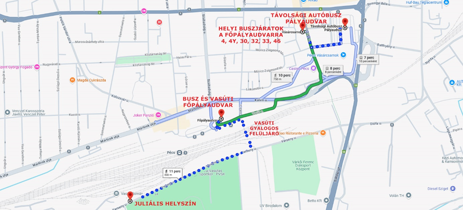 A vasútállomás (amely a Juliális helyszíne) a főpályaudvarról gyalogosan közelíthető meg, míg a távolsági autóbusz-pályaudvarról az alább látható helyi járatos autóbuszokkal juthatnak el kollégáink a rendezvényre.
