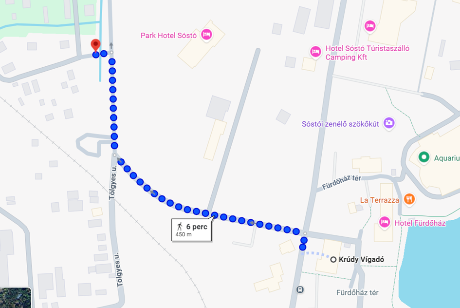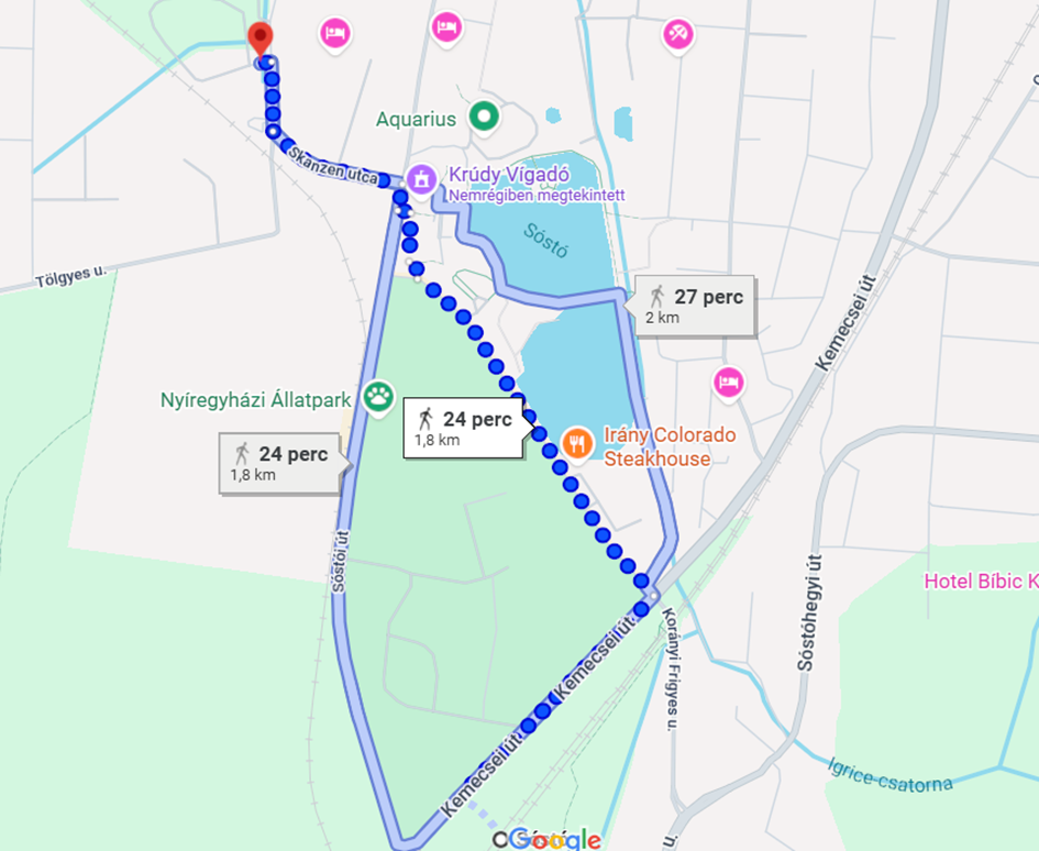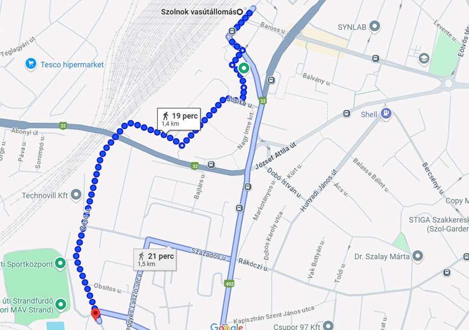 A térképen jelölt módon gyalogosan is elérhető a helyszín a vasútállomástól.