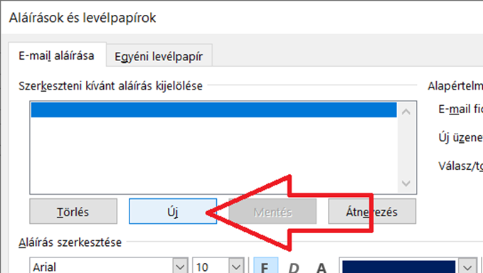 Kattints az „Új” elemre, nevezd el az új mintát például így: belsős és hozd létre a mellékletnek megfelelő aláírásmintát.